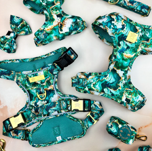 I am so happy with my purchase. The quality of the harness, collar and lead set is absolutely beautiful and the care taken over packaging is exceptional.