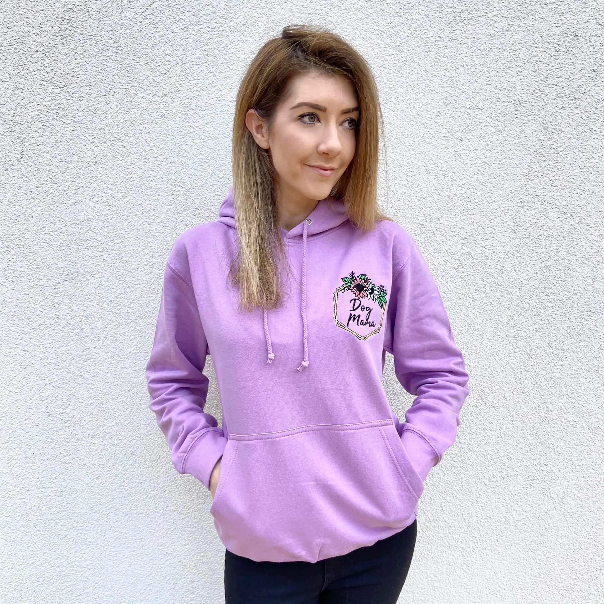 Dog Mama Floral Embroidered Lilac hoodie